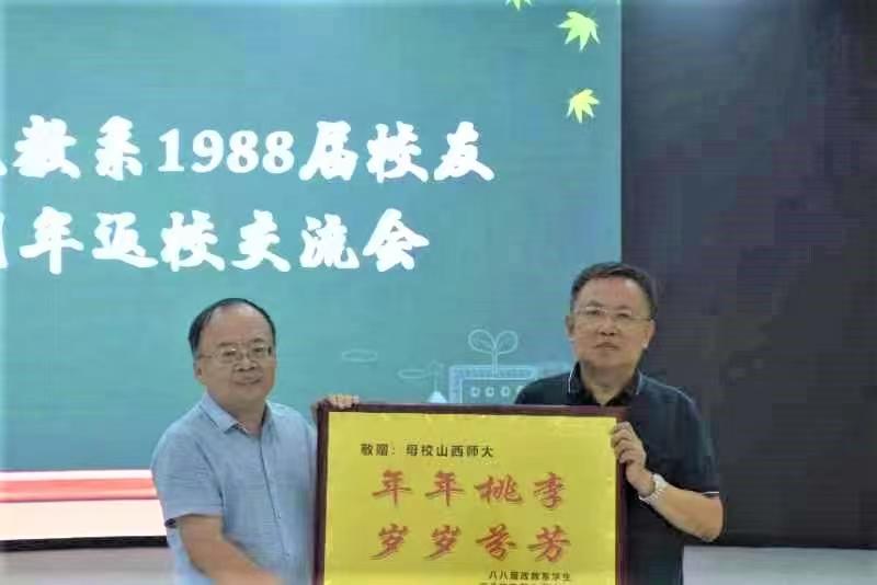 副校长王云热烈欢迎88届校友返校,向大家介绍了学校搬建太原办学以来取得的成绩。他强调,思想政治教育专业在五十多年的发展过程中,培养了一大批优秀毕业生,在社会各行各业中涌现出许多杰出校友,尤其是在基础教育领域,他们做出了重要贡献、取得了骄人的业绩,是母校的骄傲和自豪。他希望校友们要加强与母校的交流联系,共同推动师大发展。