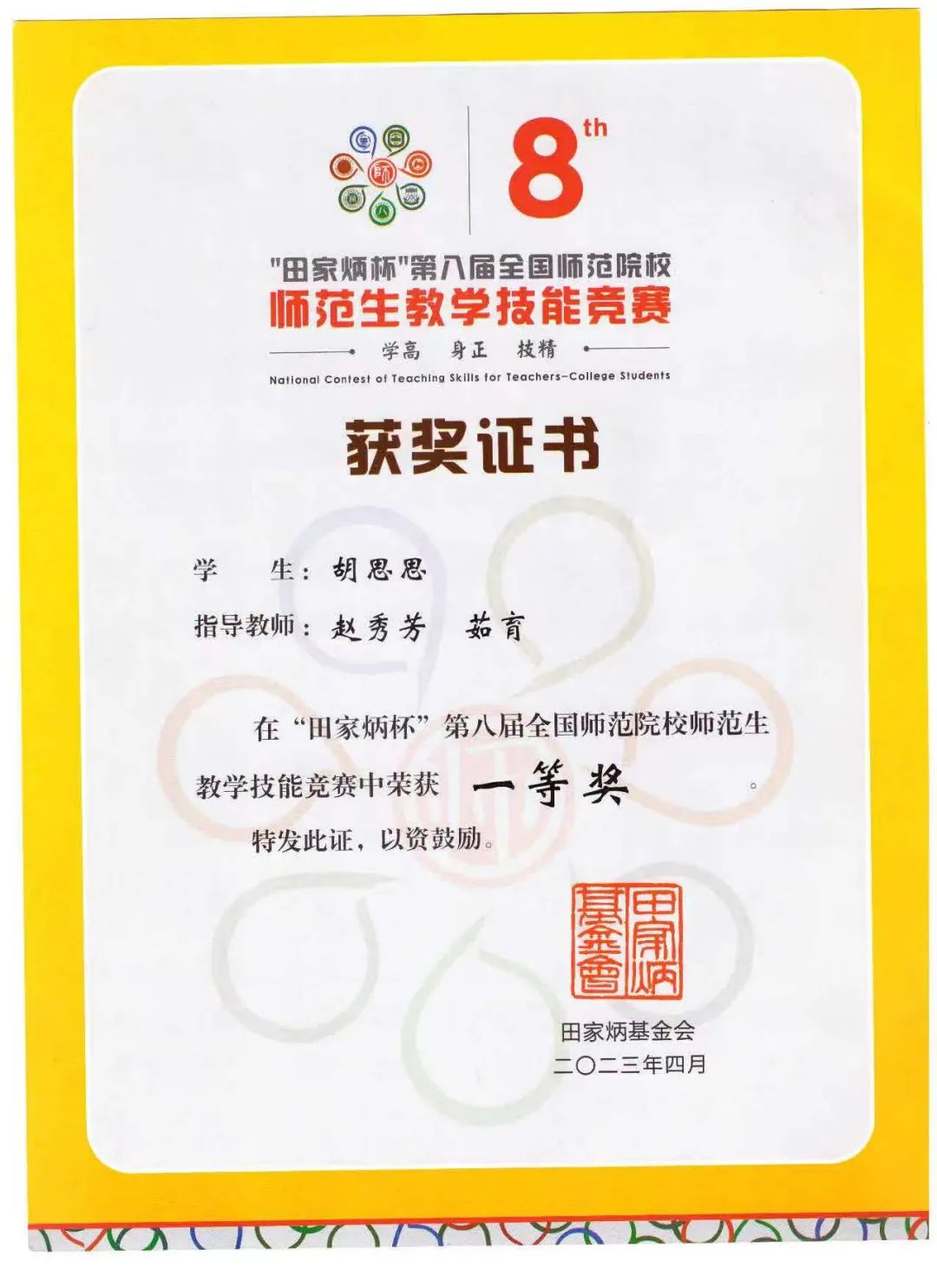 2023年4月15日至16日,“田家炳杯”第八届全国师范院校师范生教学技能竞赛决赛在浙江师范大学举行。PP电子思想政治教育专业2020级学生胡思思(指导老师:赵秀芳、茹育)荣获一等奖。这是PP电子在本科生培养工作中取得的突破性成绩。